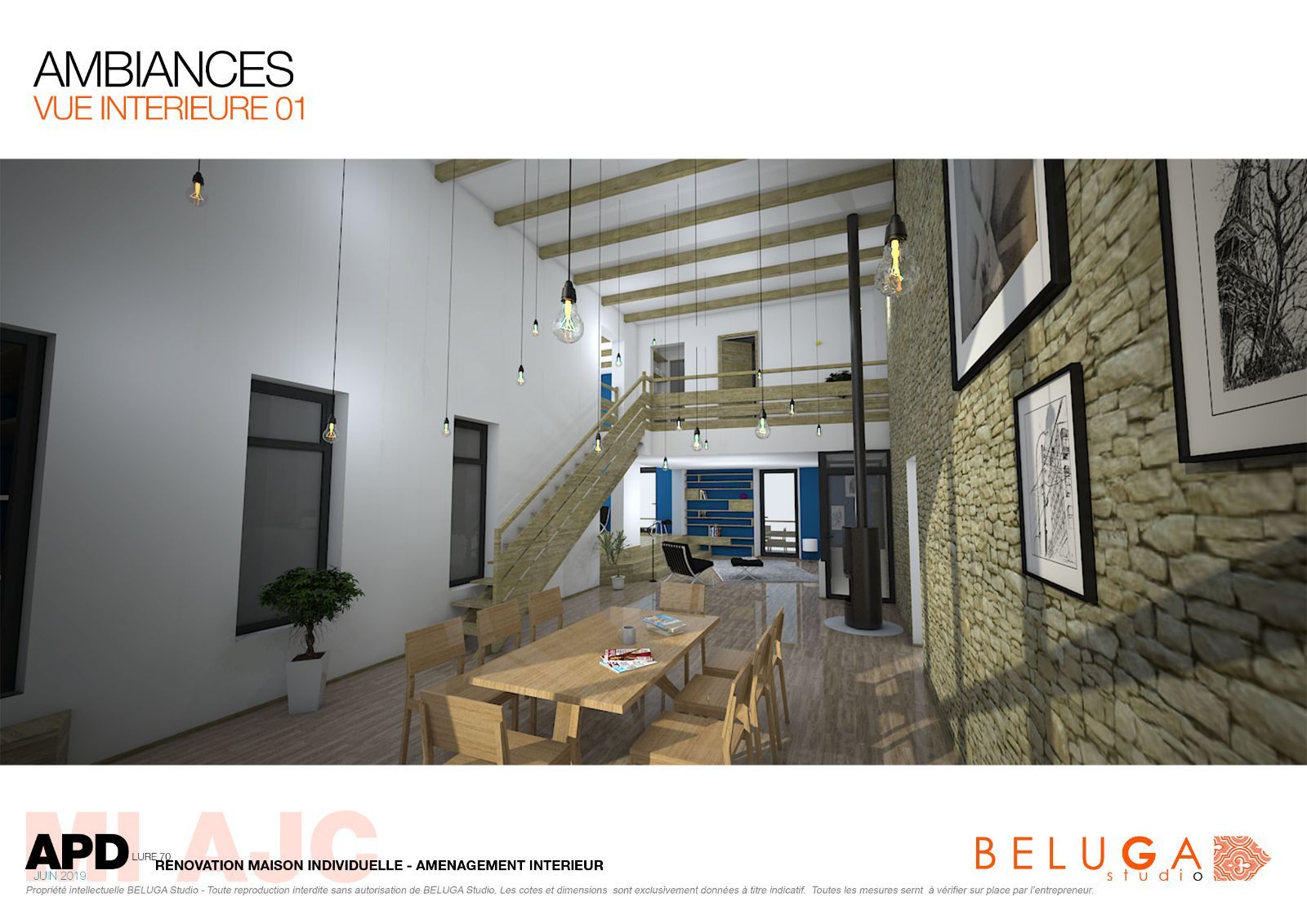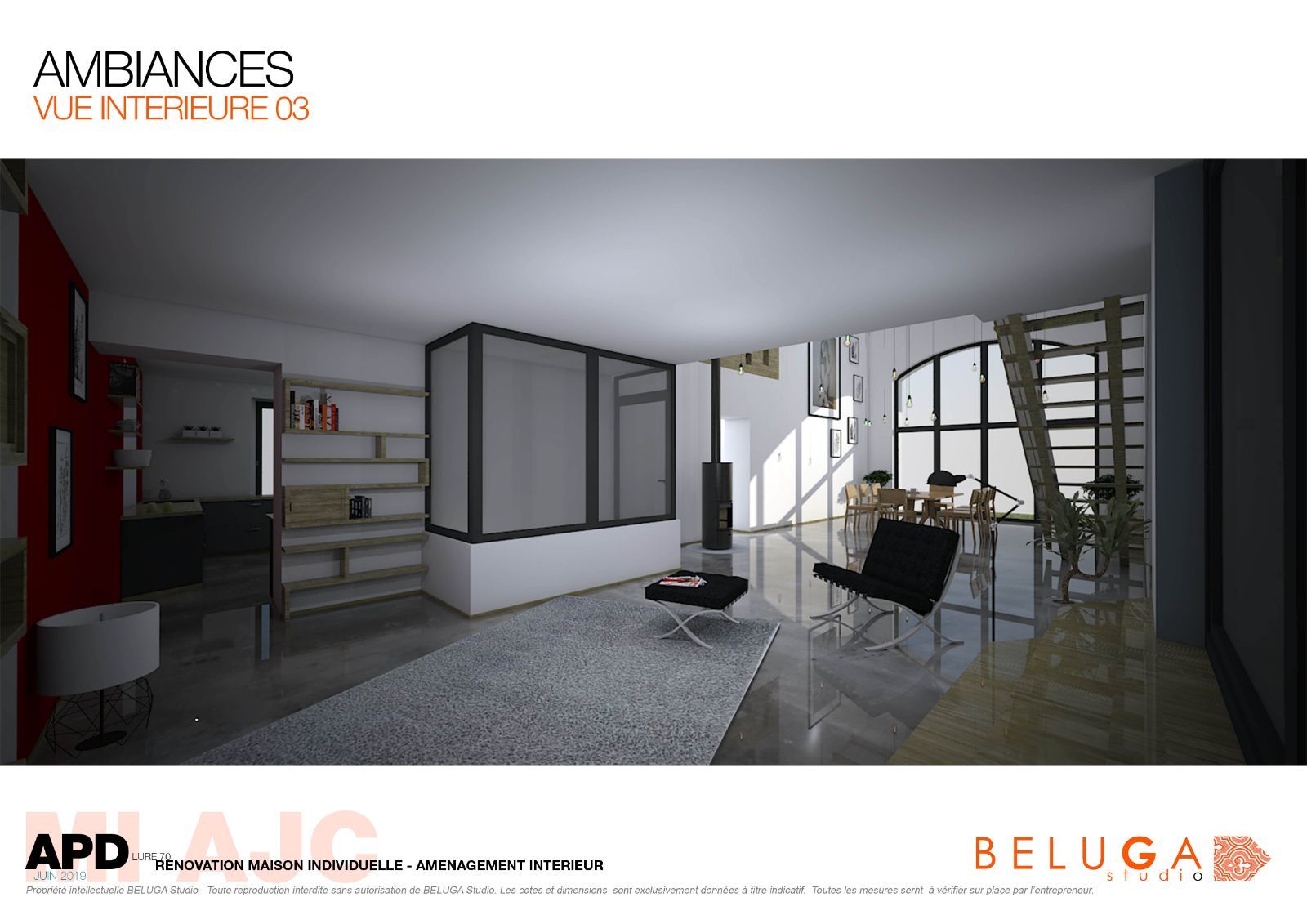 Aménagement intérieur d'une maison individuelle en échos avec la réhabilitation de l'église de TAVEY.