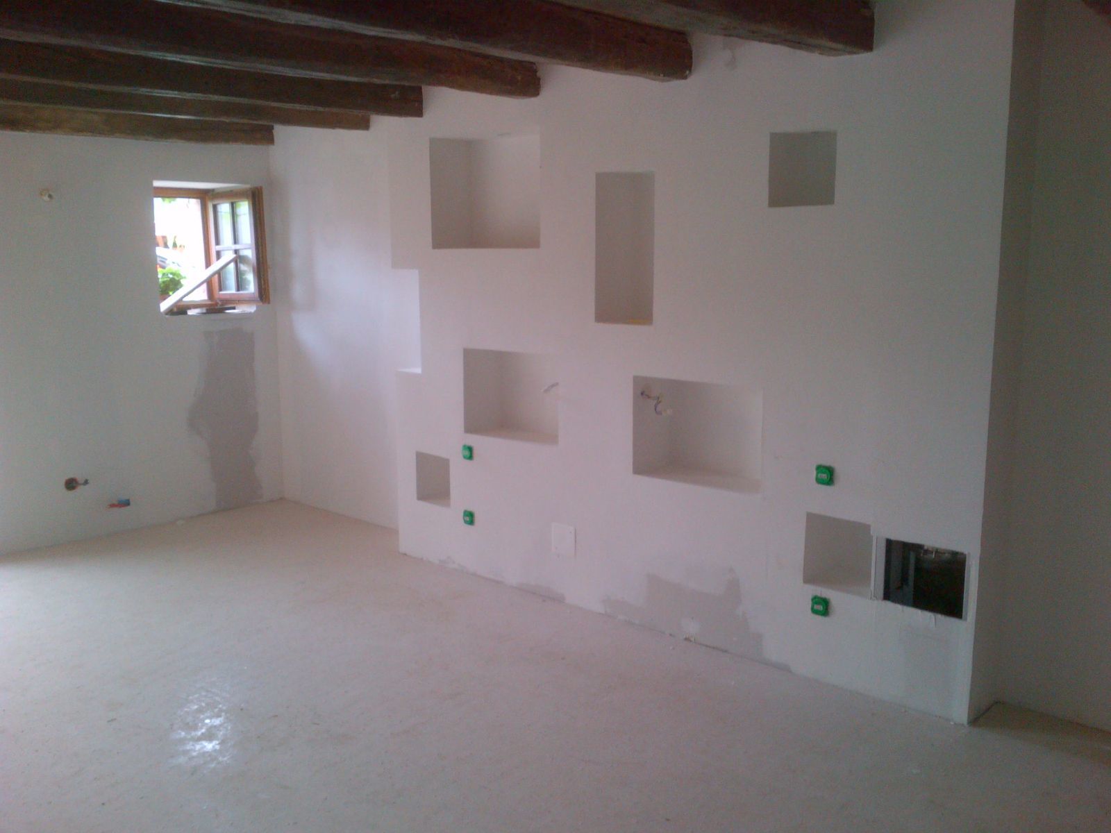 Réalisation d'un meuble "placo" sur mesure avec niches éclairées.