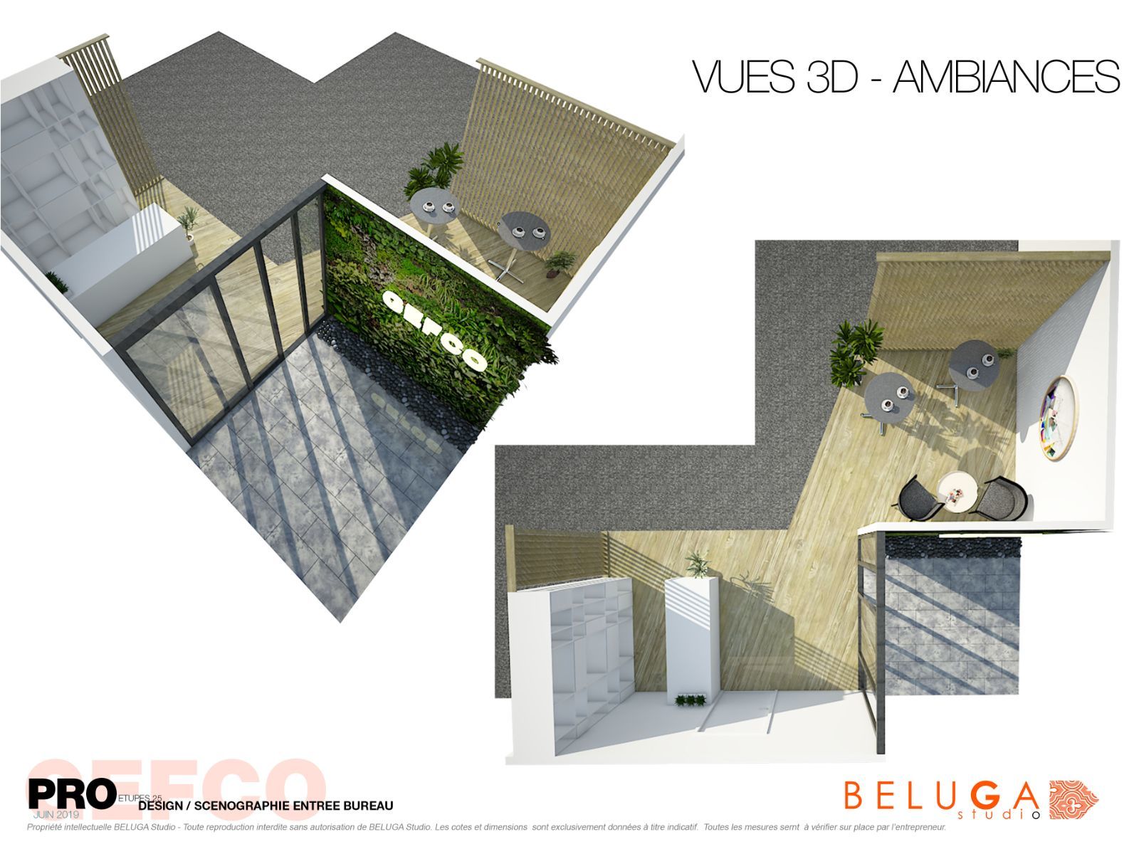 Aménagement d'une séquence d'entrée avec utilisation d'un mur végétalisé.