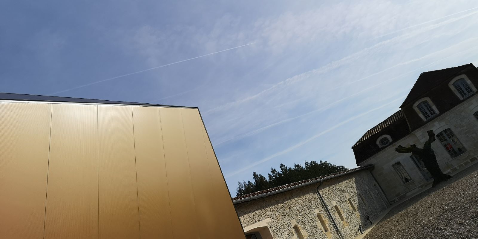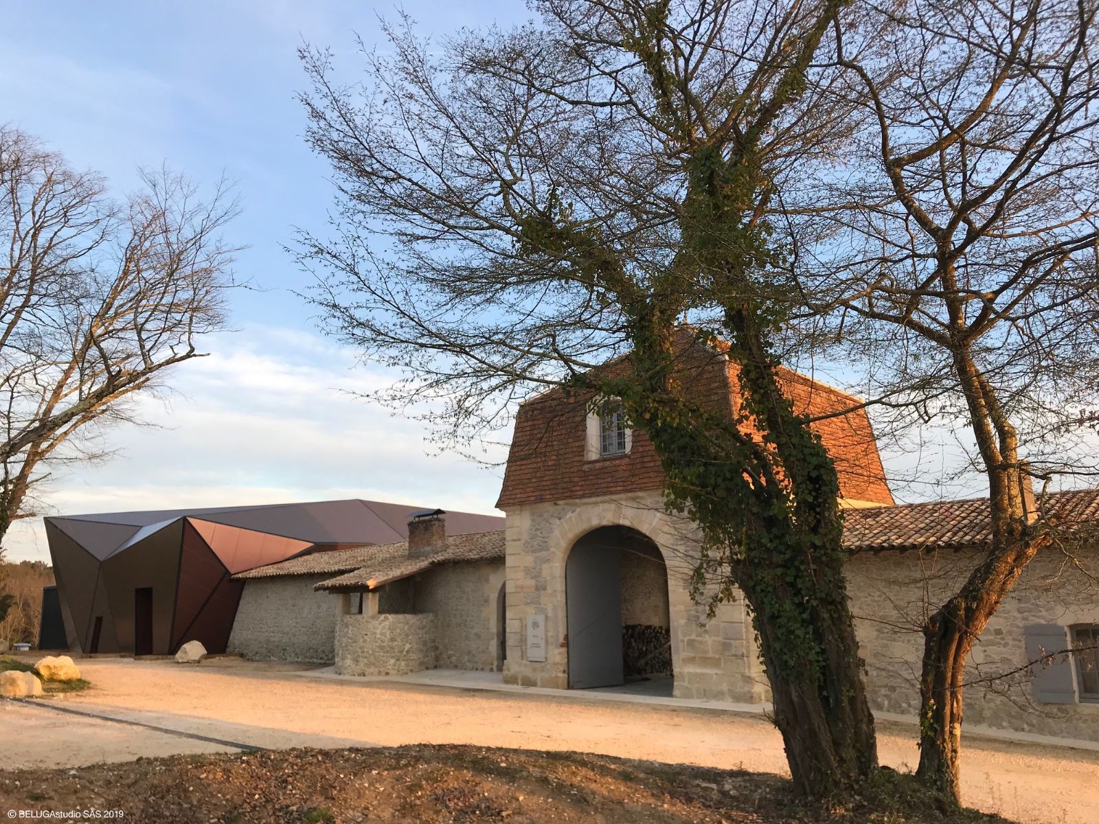 Nous avons souhaité par ce projet faire interagir un langage contemporain et original avec un intérieur ancien d’aspect rustique. Nous voulions surprendre une première fois par l’aspect extérieur de la « carapace ». Puis en la pénétrant, se laisser surprendre à nouveau par la découverte rassurante d’un chai centenaire et sauvegardé à l’intérieur.