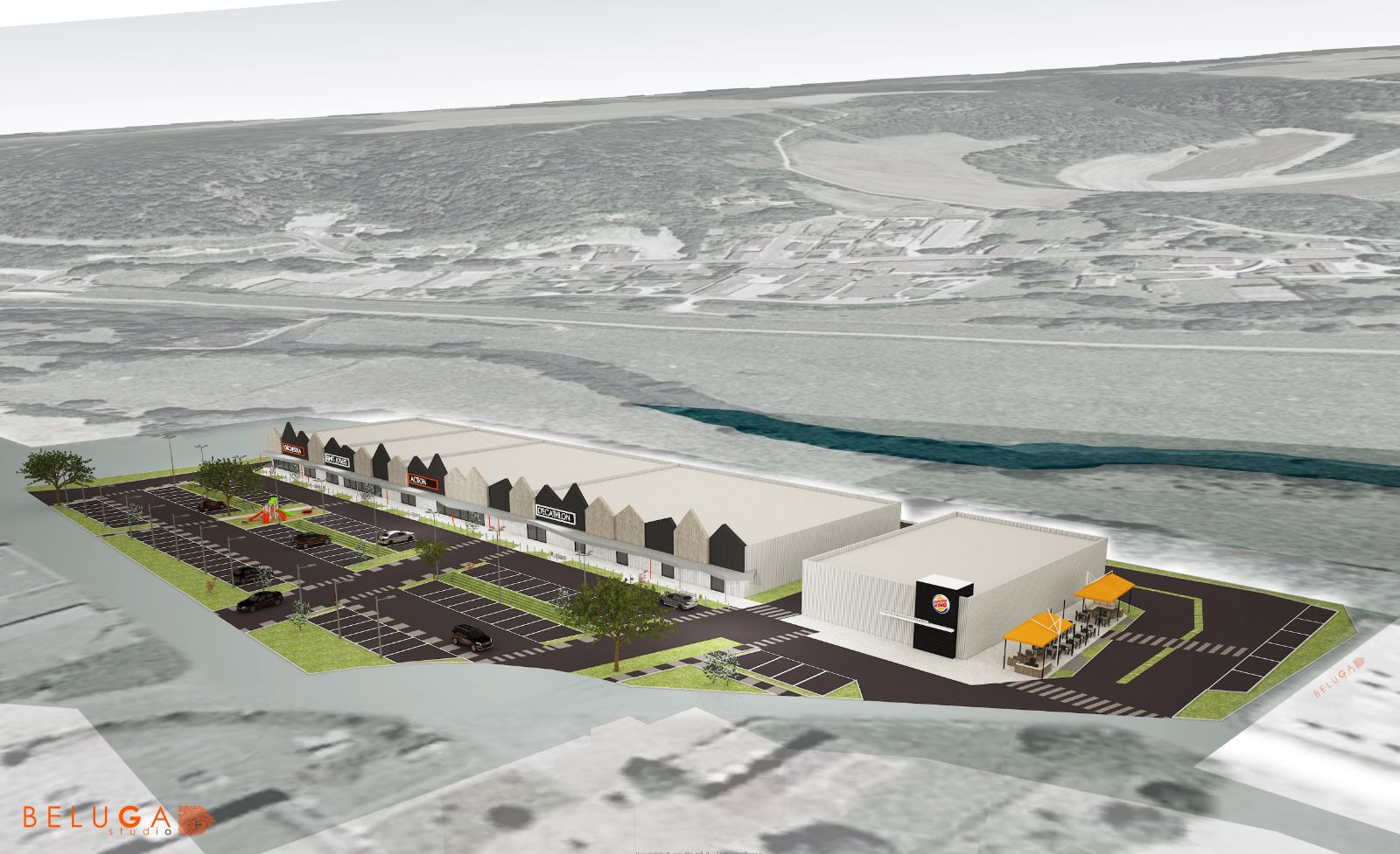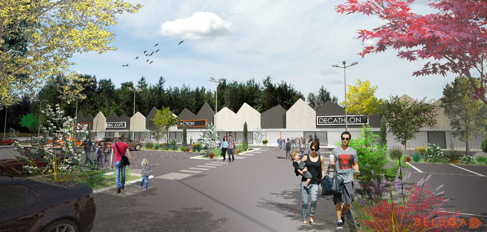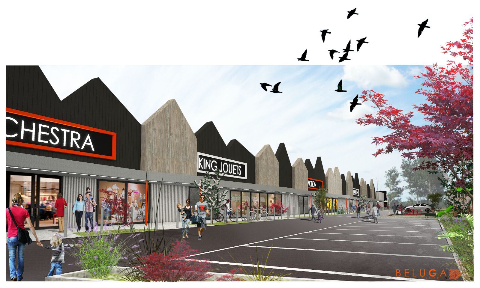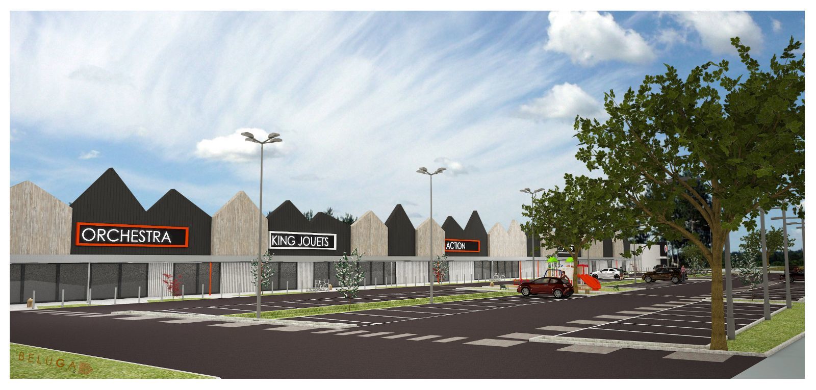Façade principale qui reprend les skylines de toitures à doubles pans de la région.
